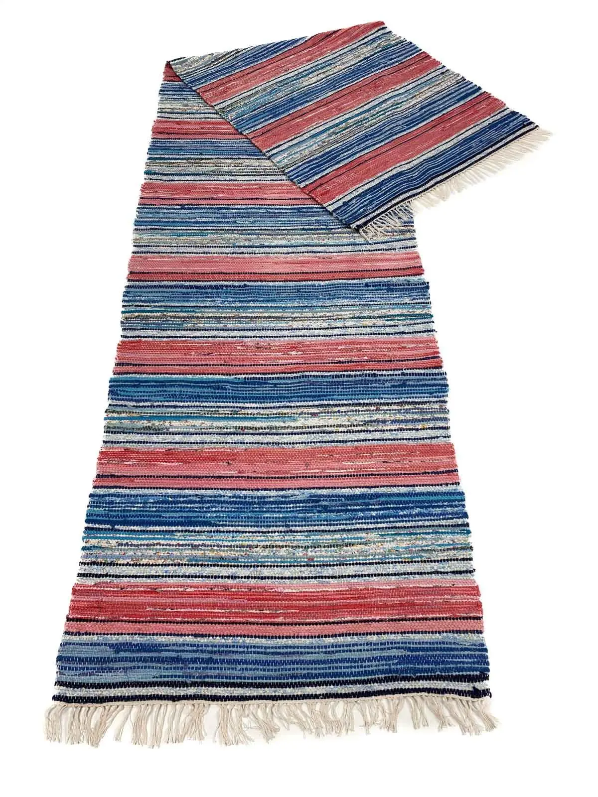 Traditional rag rugs are a beloved part of the Swedish heritage. They are all handwoven, an ingenious way of recycling, where used clothes and other textiles are turned into durable, colorful rugs in a creative way. Naturally, each rug is one of a kind or possibly made in a small set, if the weaver wanted matching rugs for a room in mind.