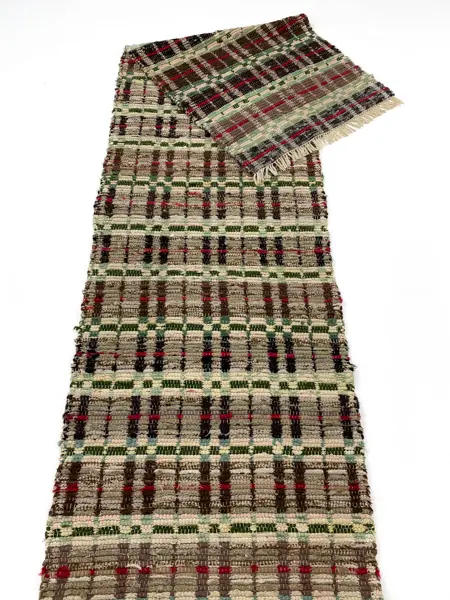 Long rag rug in a piece od art. Squared pattern carefully woven by hand in the late 1950´s. Good condition.