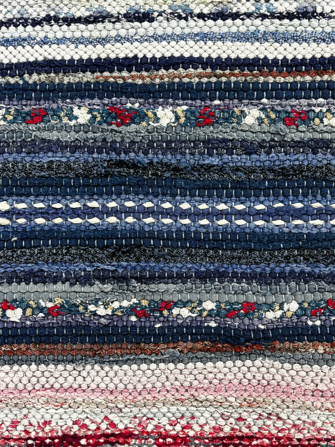Some rugs stand out, with that little extra something that makes them special. This is one of those, where the weaver has been creative with either the color mix, the pattern, or maybe the use of material.
