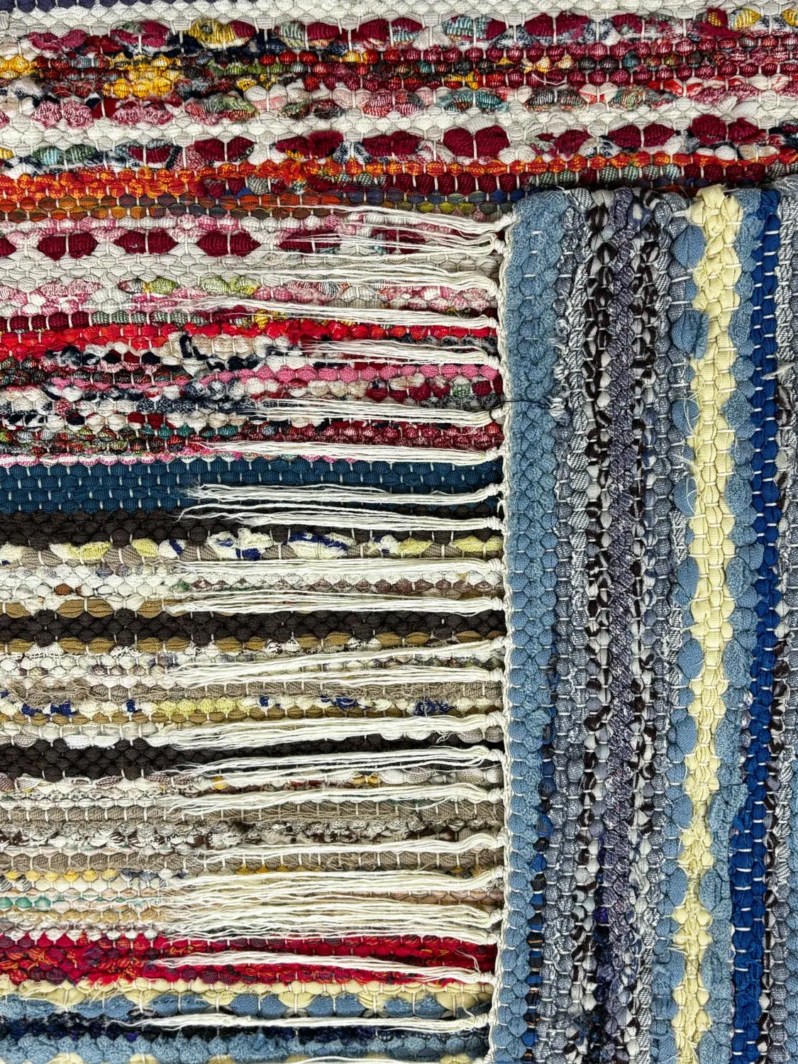 Some rugs stand out, with that little extra something that makes them special. This is one of those, where the weaver has been creative with either the color mix, the pattern, or maybe the use of material.
