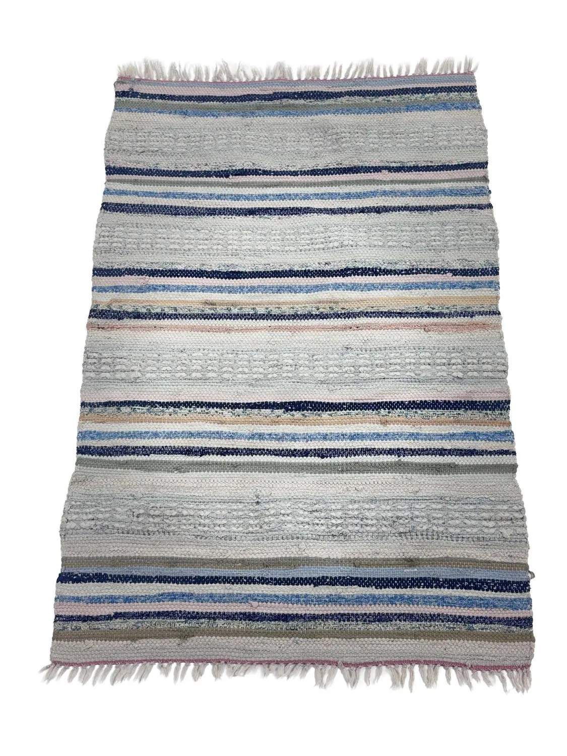 Sweet little rag rug in pale shades. Well woven in the late 1940´s.