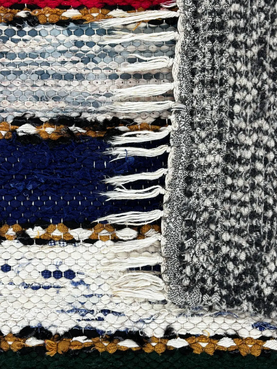 Some rugs stand out, with that little extra something that makes them special. This is one of those, where the weaver has been creative with either the color mix, the pattern, or maybe the use of material.