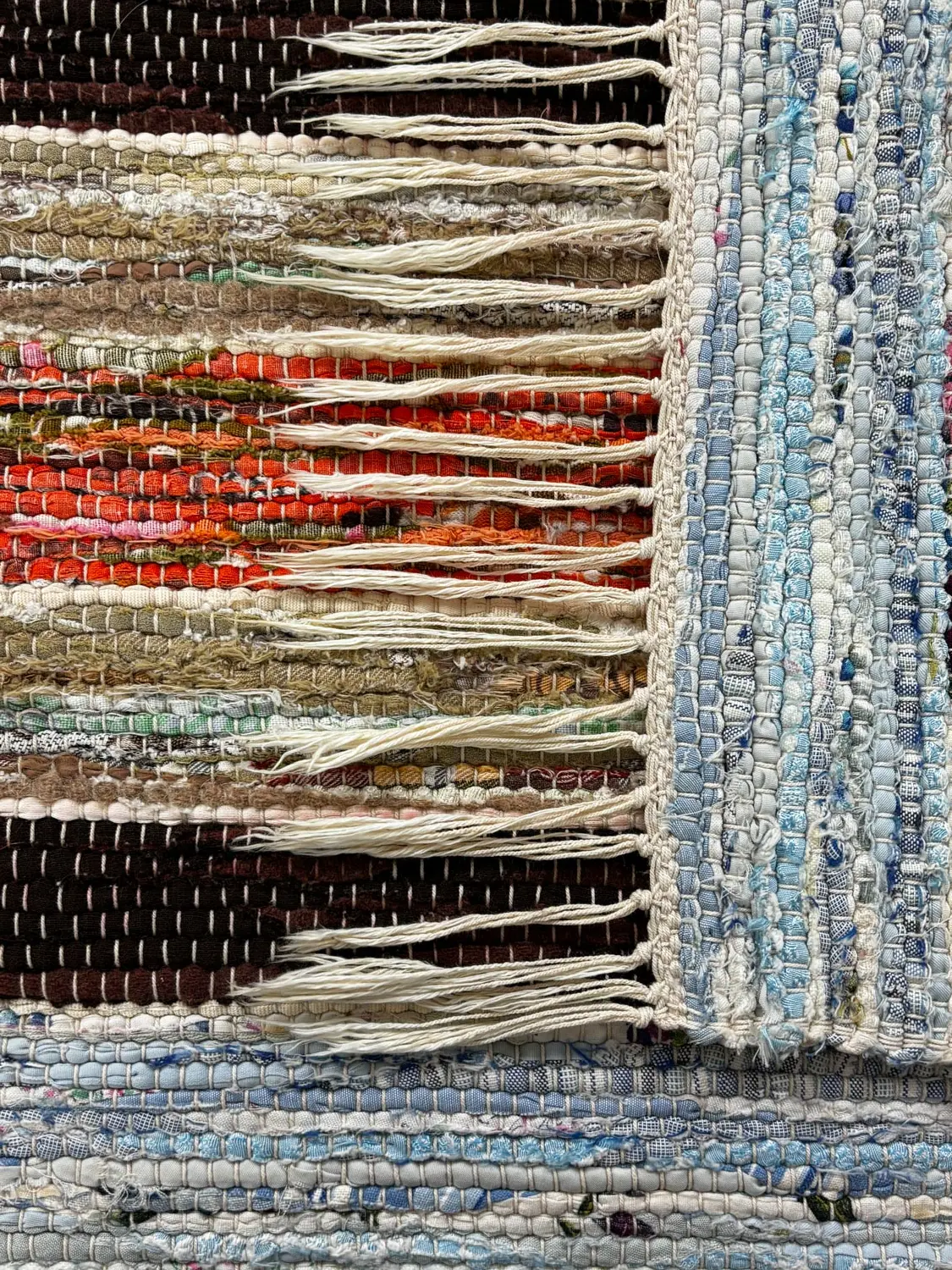 Some rugs stand out, with that little extra something that makes them special. This is one of those, where the weaver has been creative with either the color mix, the pattern, or maybe the use of material.