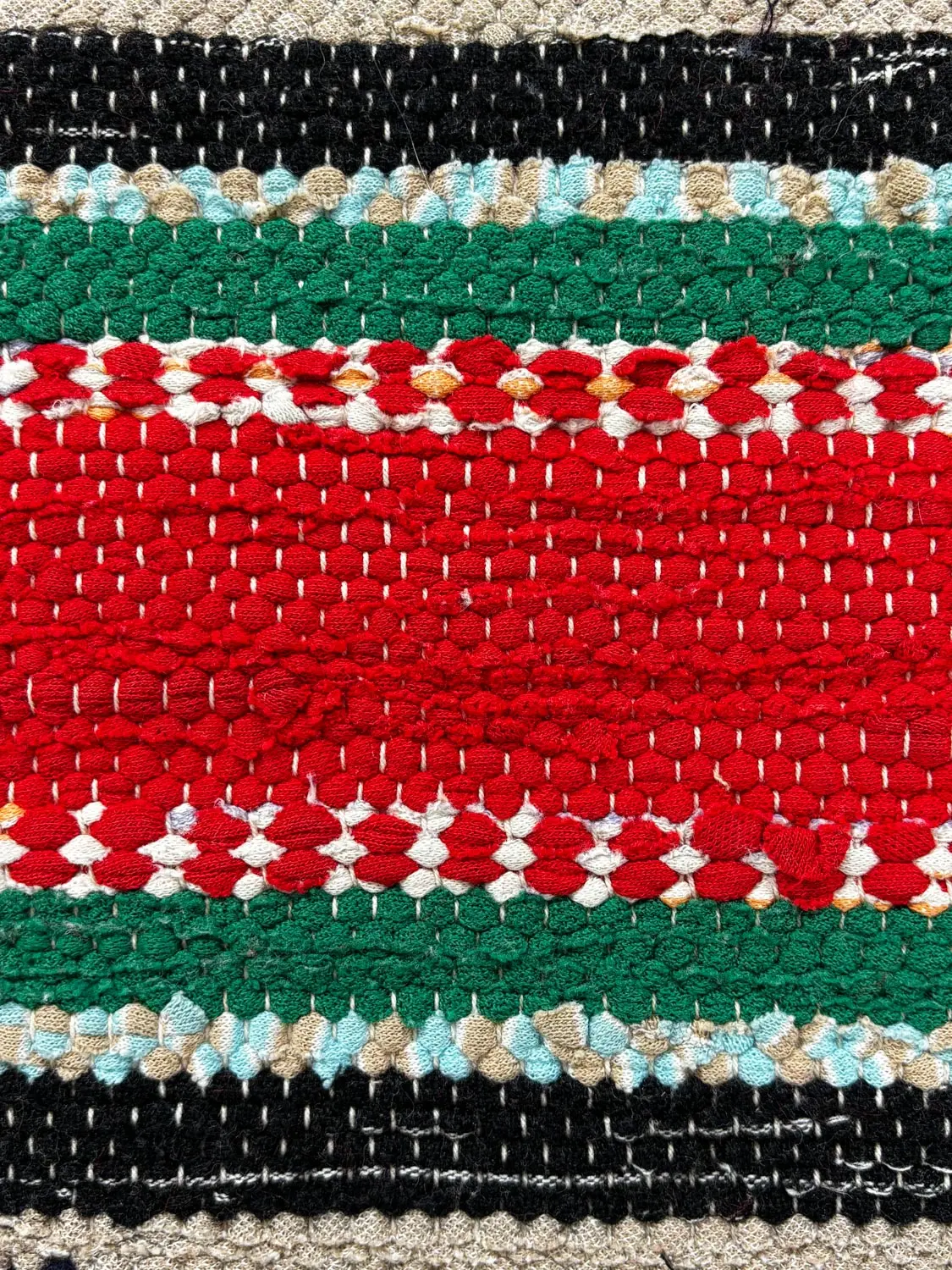 Some rugs stand out, with that little extra something that makes them special. This is one of those, where the weaver has been creative with either the color mix, the pattern, or maybe the use of material.