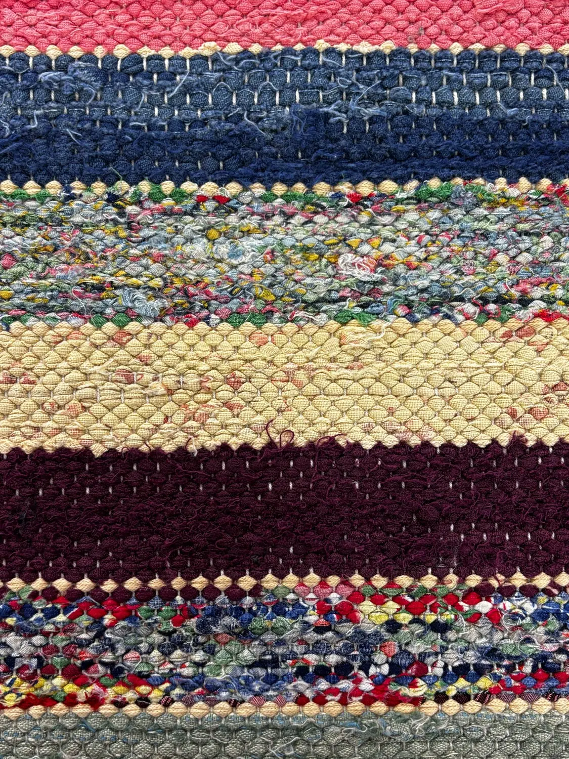 Some rugs stand out, with that little extra something that makes them special. This is one of those, where the weaver has been creative with either the color mix, the pattern, or maybe the use of material.