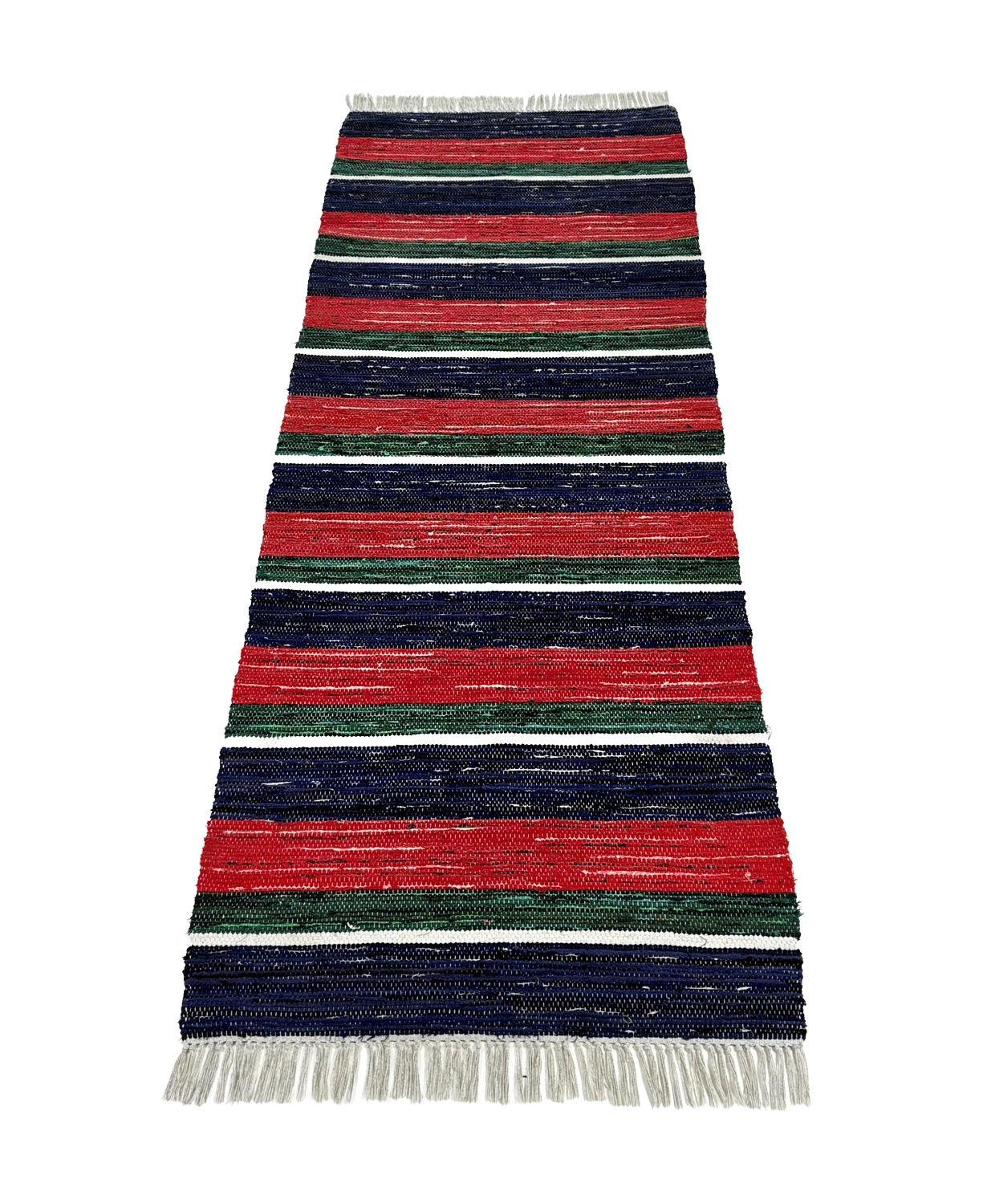 Colorful beautiful striped rag rug in bright colors of red, blue and green. Never used, perfect condition.