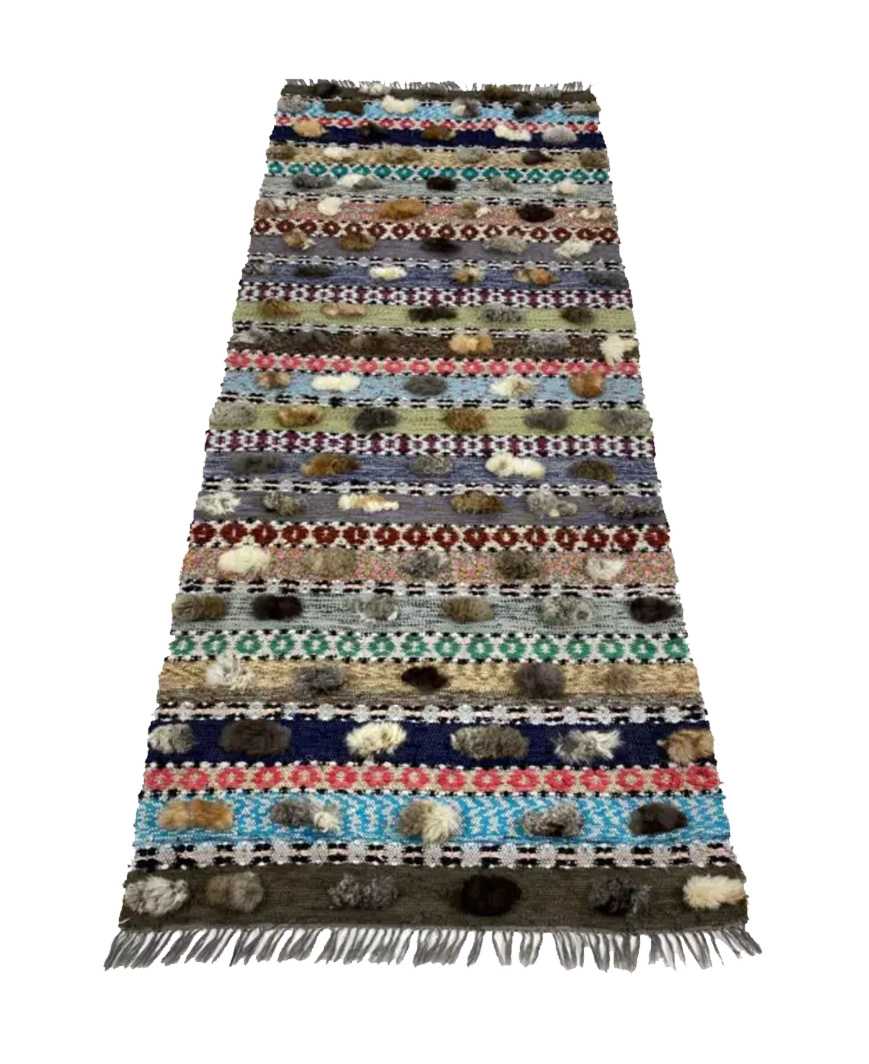 Carefully handwoven rag rug with elements of rabbit fur in the pattern. Beautiful vintage rag rug from the 1960´s. rarely used, very good condition! Unique piece of handcraft. Washable in 40 degrees.