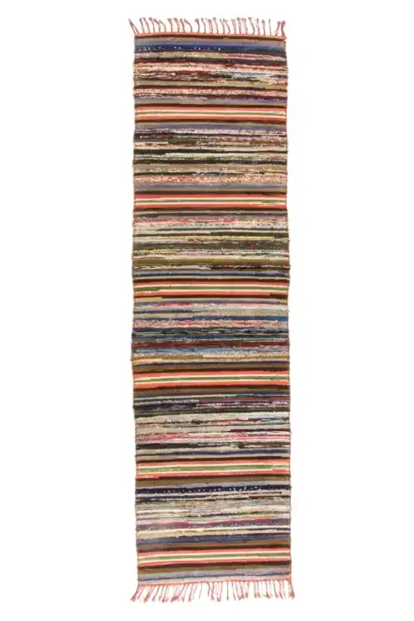 A colorful rag rug from the late 1960´s. Warm bright colors in a striped pattern. Good condition.