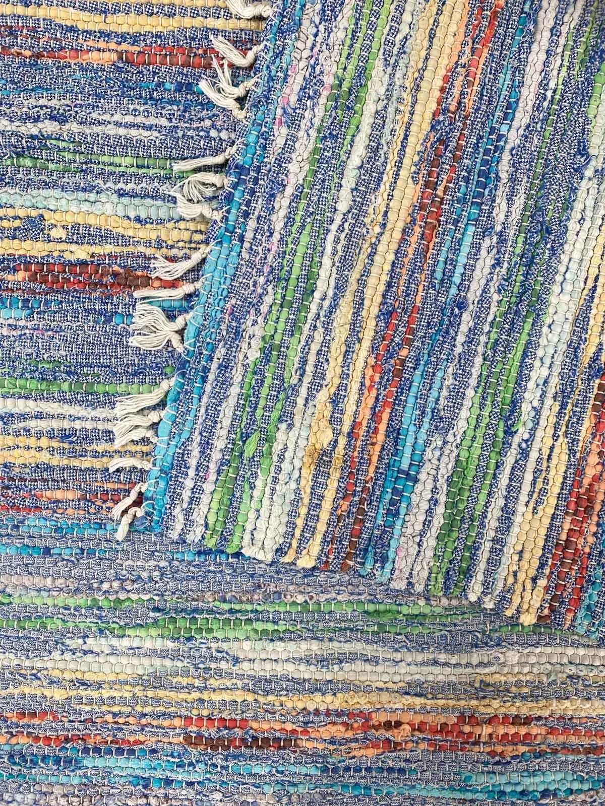 Thin well wovrn rag rug in soft pastel colors. Woven by hand in tha late 1960´s. Good condition.