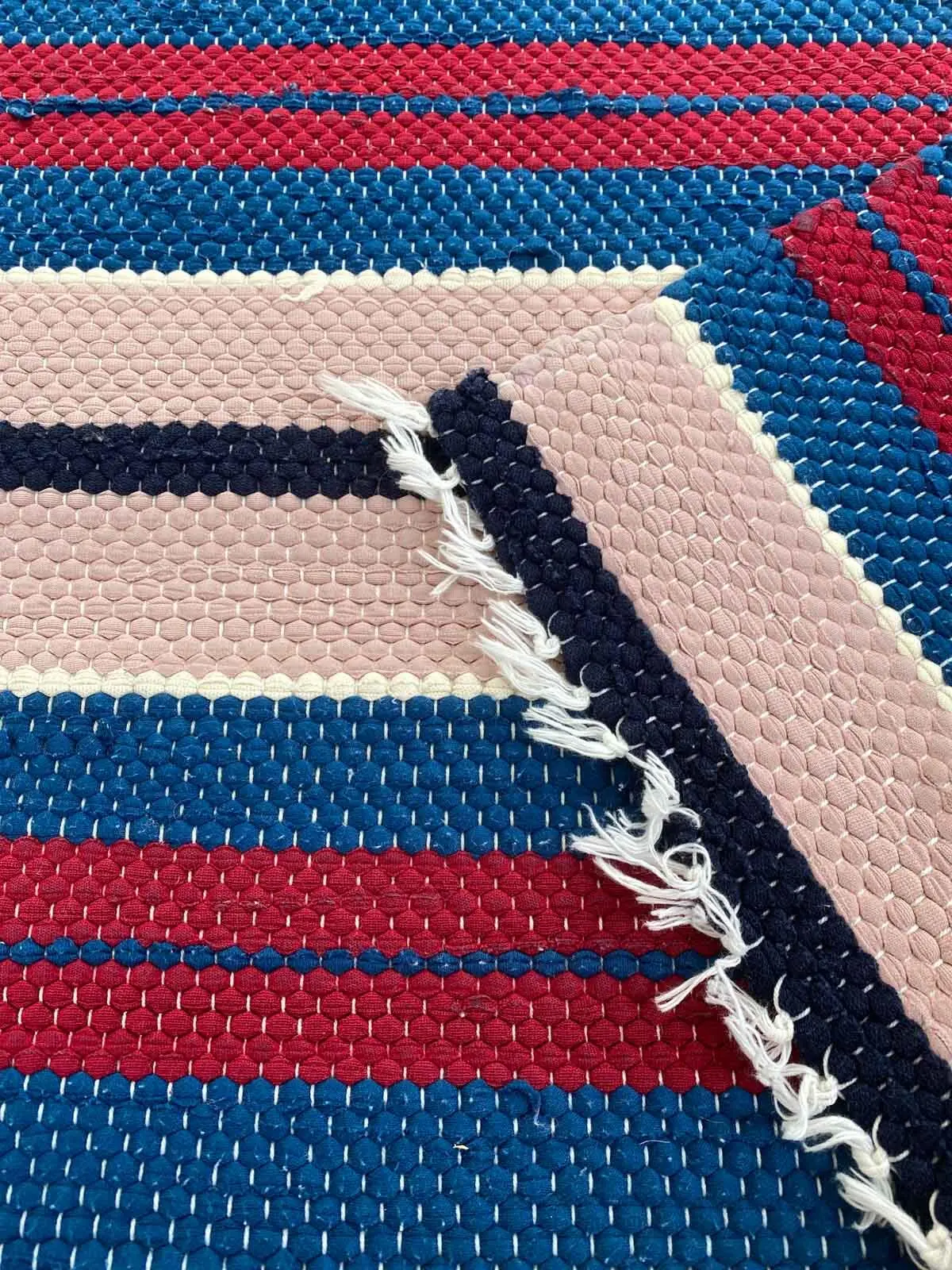 Bright colors in this thin, well woven rag rug from the 1990´s. Rarely used, good condition.