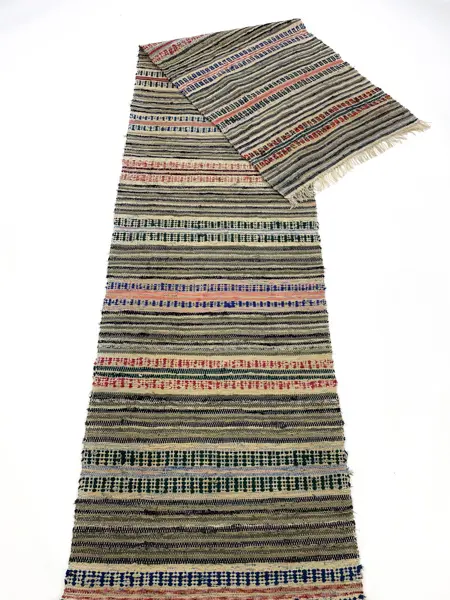 Well woven rag rug by Elvira Gustavsson. She was born 1904 and lived her life in Tingsryd, Småland. She loved to weave and created alot af beautiful rag rugs during her lifetime. This lovely rag rug is from 1930´s. Lovely pattern. In mint condition!
