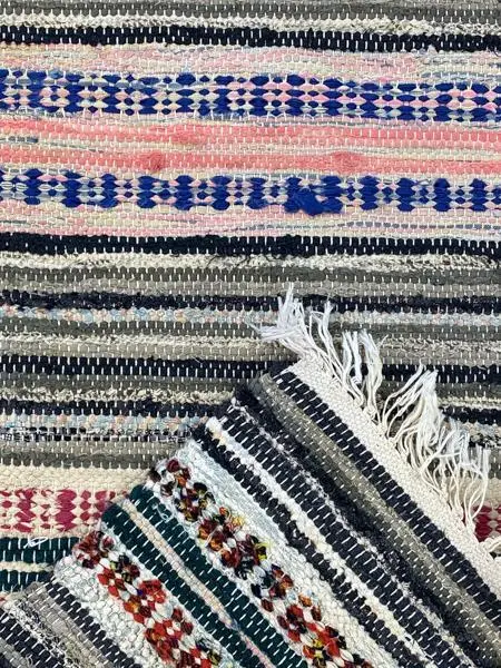 Some rugs stand out, with that little extra something that makes them special. This is one of those, where the weaver has been creative with either the color mix, the pattern, or maybe the use of material.