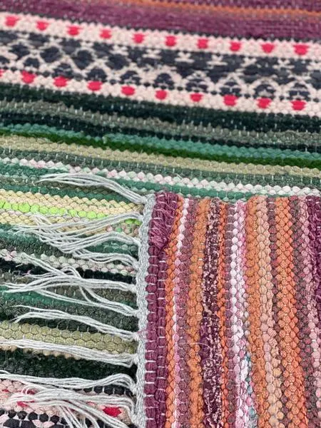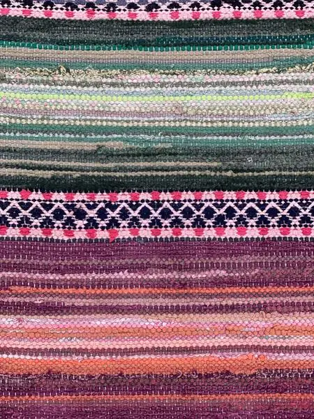 Pink and green in a lovely pattern! Thin and well woven rag rug from the early 1950´s. Rarely used, perfect condition.