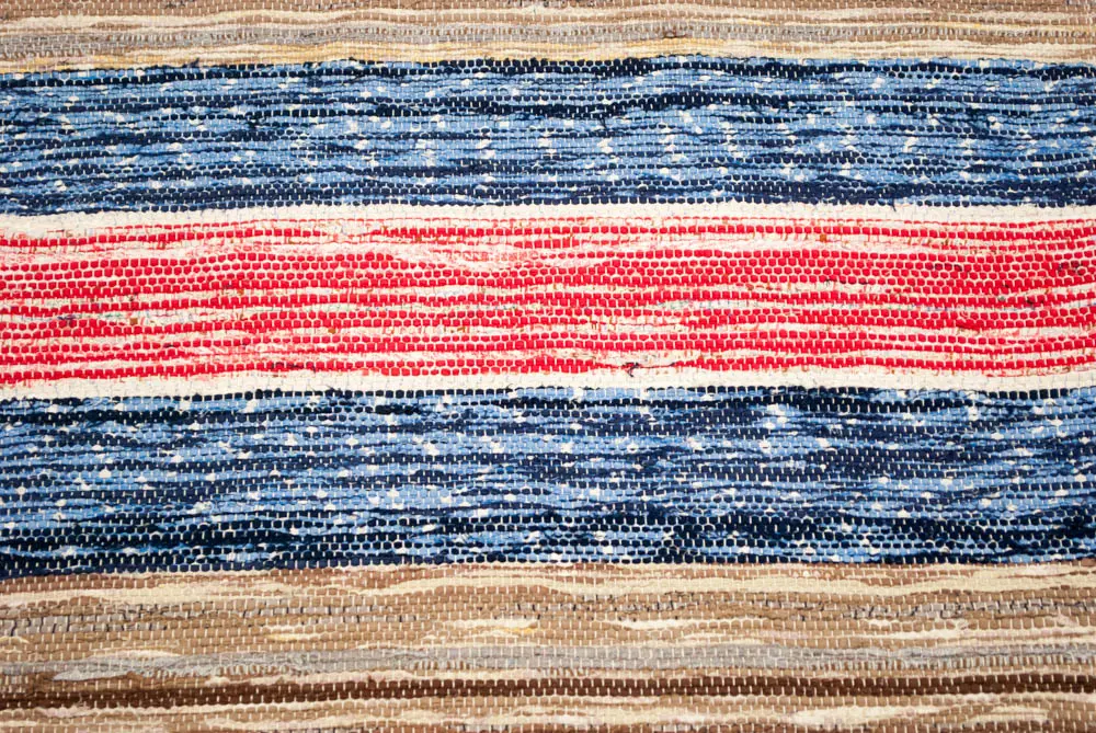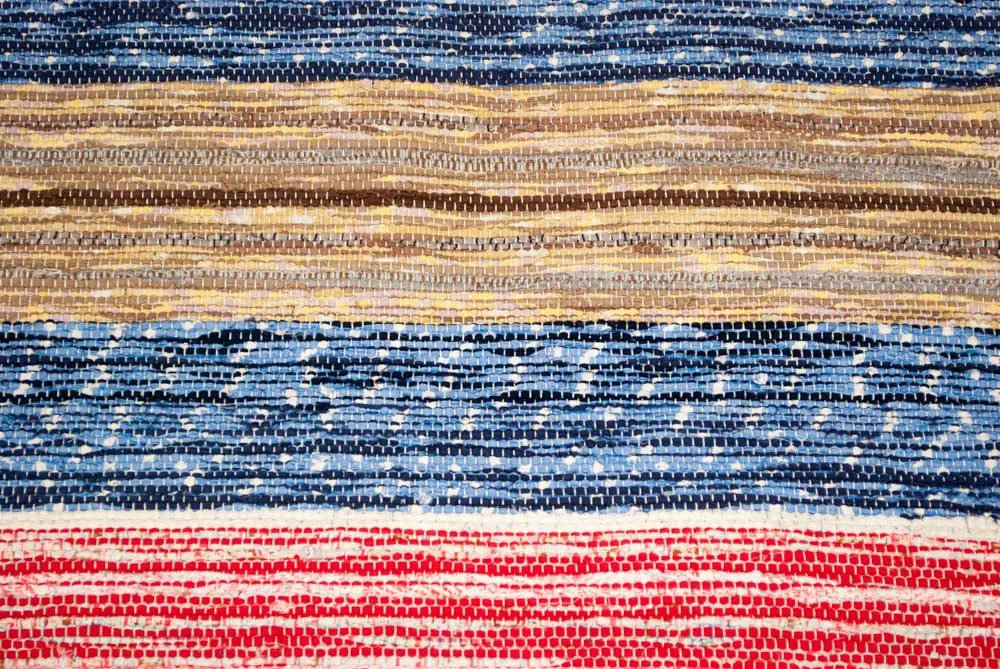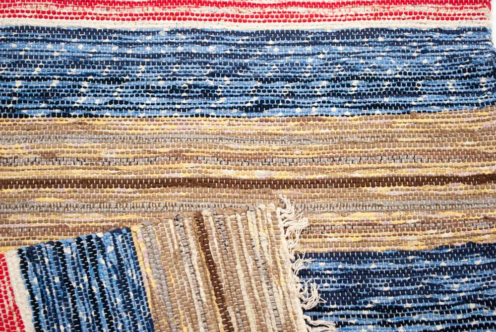 Well wovern striped rag rug in red and blue shades. Well woven by hand in Småland, in the late 1950´s. Good condition!