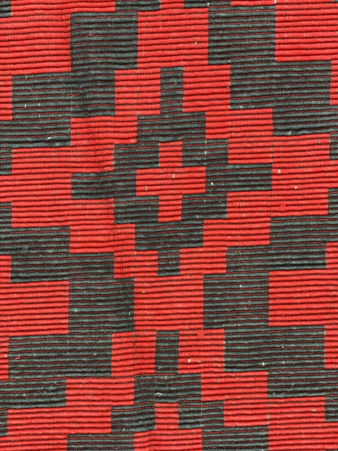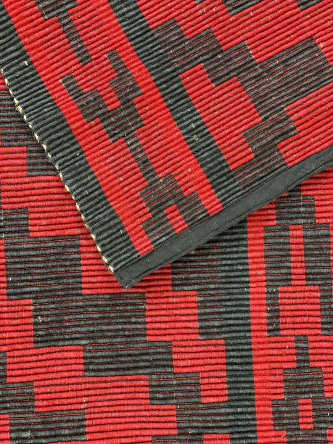 Colorful beautiful rips rug in black and red. Well woven by hand in the 1950´s. Good condition.